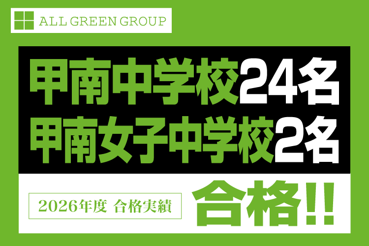 ★ 甲南中学校 合格率 96% を達成いたしました。